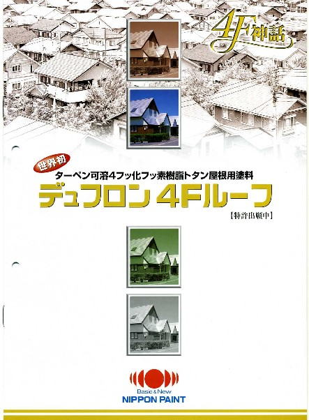 | 屋根トタン用最高級塗料デュフロン4Fルーフが発売されました。 従来のフッ素よりも耐久性が向上してより光沢感が長持ちするようになりました。 個人的には非鉄金属屋根向きだと考えています。 |