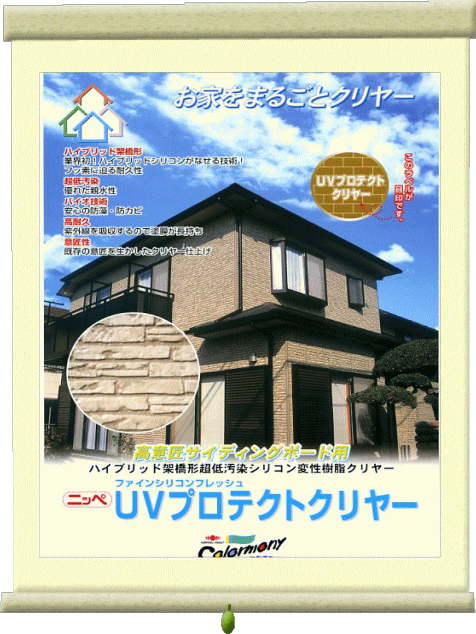 | 昨年12月に日本ペイントの研修会に参加して来ました。 近年サイディング壁の塗り替えが多くなってきましたが・・・サイディング壁を従来の塗料で塗装してしまうと模様は残るが色が単色になってしまうケースが多く既存のイメージとは異なってしまいます。そこで登場したのがこの商品です。 この商品は、サイディング壁の色が変色する前にシリコンクリヤーを塗る事によりサイディング本来の寿命も延ばし見た目もあまり変わらずに仕上げる事が出来ます。 |
