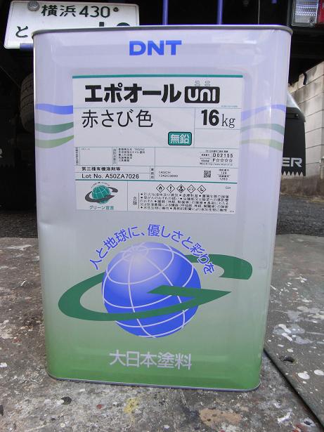 | 大日本塗料の錆止めを使用し始めました。 他社の錆止めに比べ塗り重ね時間が長く(30日)雨天などで1週間以内に上塗りが出来ない時に便利です。 ※標準的なエポキシ錆止めの塗り重ね時間は4時間〜7日以内(20℃)に塗装する事と記載されています。 |