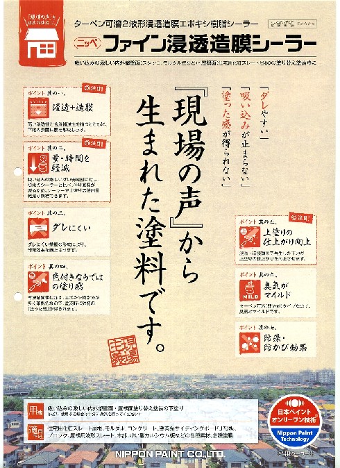 | ついに商品化されたファイン浸透造膜シーラーはコロニアル・スレート屋根の下塗りはもちろん劣化したサイディングの下塗りに使用すると従来のシーラーよりもムラ無く上塗りが仕上がると言う期待のシーラーです。 このファイン浸透造膜シーラーを今後、コロニアル・スレート屋根塗装の仕様に加えて行きます。 ※お客様には見えなくなる下塗り塗料ですが塗装工事の良し悪しを決める重要な物だけに出来る限り良い物を択んでお薦めしたいと思います。 |